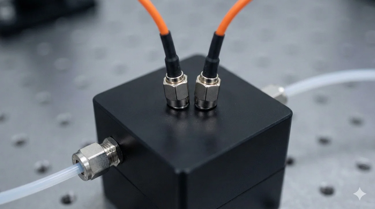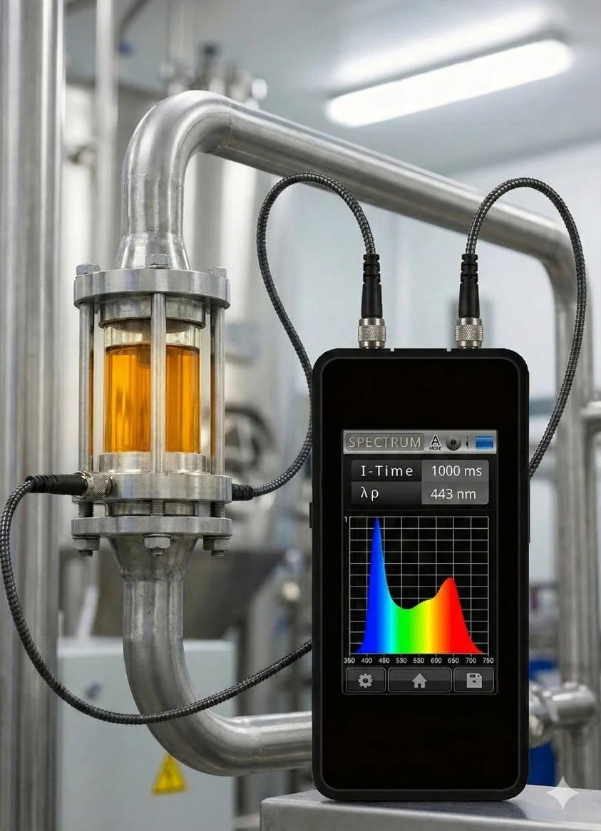Sensores ópticos industriais para análise espectral de líquidos em tempo real (UV, Visível e NIR). Solução completa com célula de fluxo customizável, inteligência artificial integrada e comunicação industrial (Modbus RS485 e Wi-Fi). Ideal para instalação Inline, Online ou At-line em processos industriais críticos.